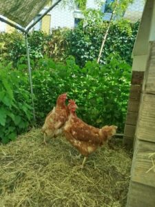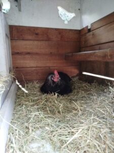 Un doux petit nid a vu le jour. Ainsi, depuis plusieurs semaines deux poules ont élu domicile au Rondeau! Hier une troisième est arrivée, Pancake, car elle ne s’entendait pas bien avec ses congénères dans son ancien poulailler.