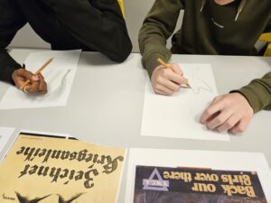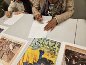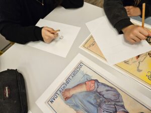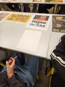 Ils ont également réalisé un atelier sur l’écriture d’un journal d’un poilu ou un travail autour de la création d’une affiche de propagande qui aurait pu être réalisée à l’époque (dans la perspective du travail demandé pour la cérémonie du 11 novembre)